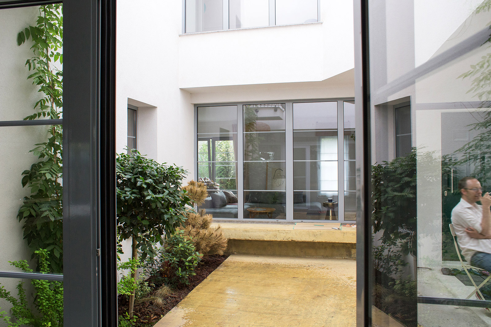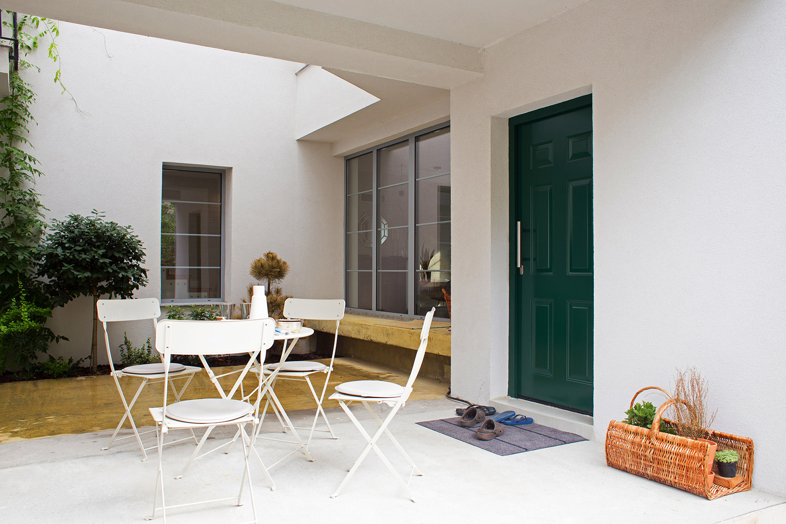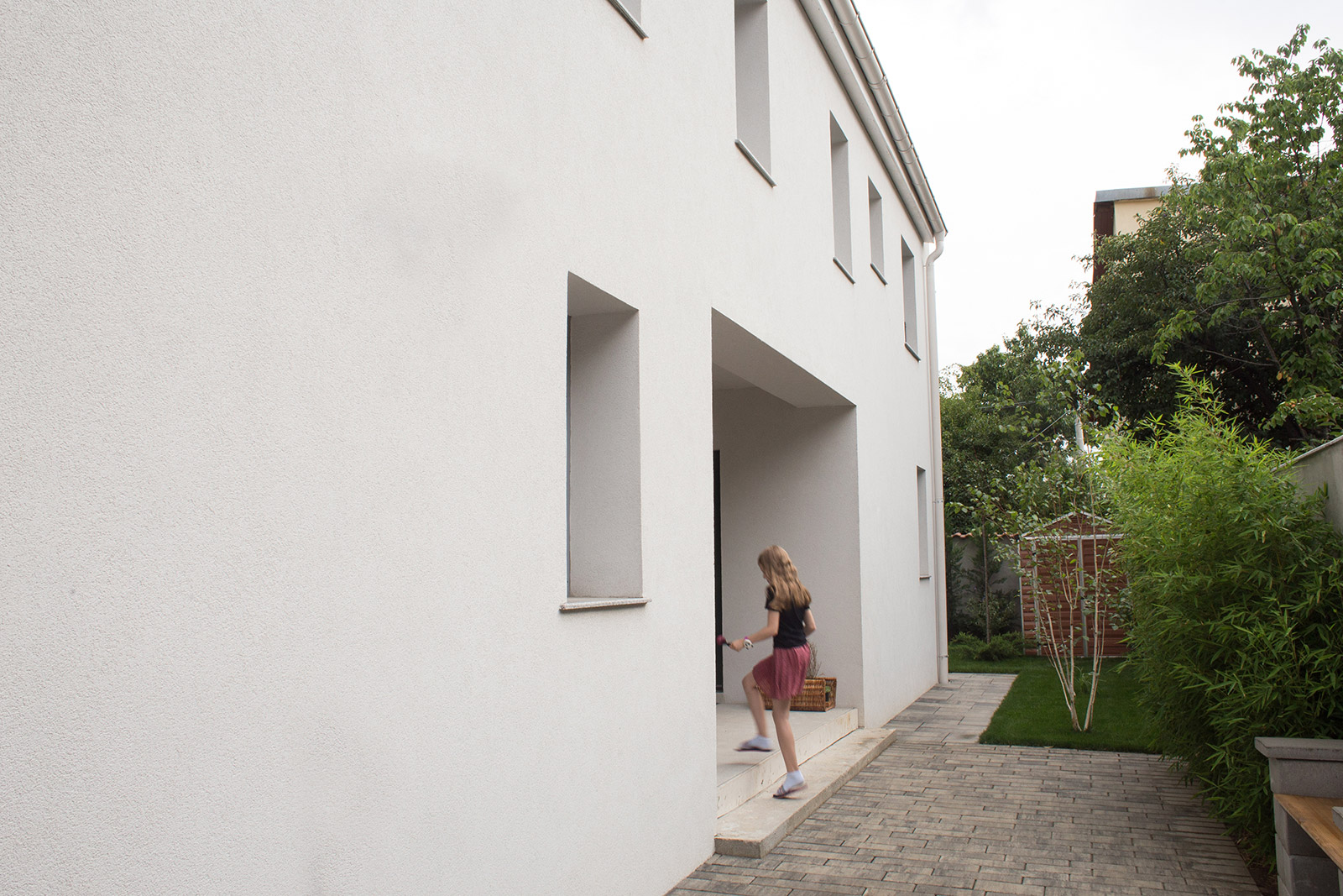 In a residential area typical for semi-detached houses, the project introduces an intermediate space, distinct from the front, lateral and back gardens. Placed in the middle of the house, this light and ventilation courtyard is at the same time an elegant extension of the front entrance, a place to enjoy a eating or sitting outdoors.