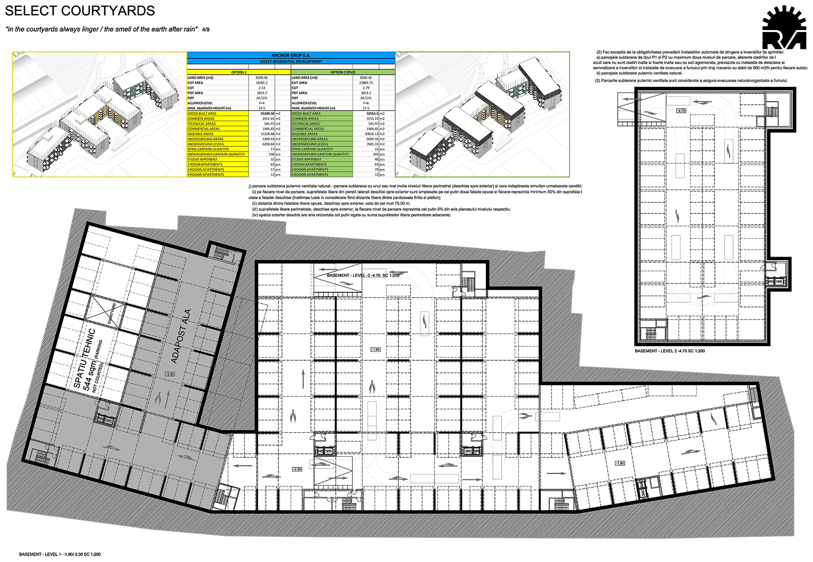 The first step in approaching the project was placing the 4000 square meters on the plot. Thus the proximity and size of the residential buildings near our site made us consider withdrawing as far as possible from the eastern site limit. The next step of the project came naturally by ranking the space created inside and outside the building. One of the main features of the project was obtaining different types of outdoor spaces, each being characterized by the functions it hosts, the exposure to the city and most significantly the facade’s, their colors and textures.