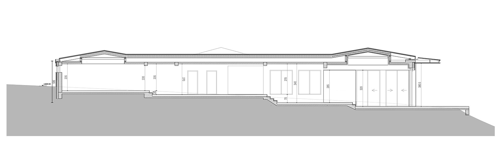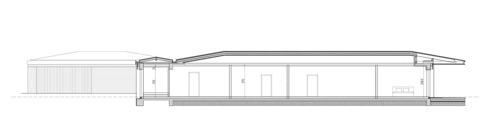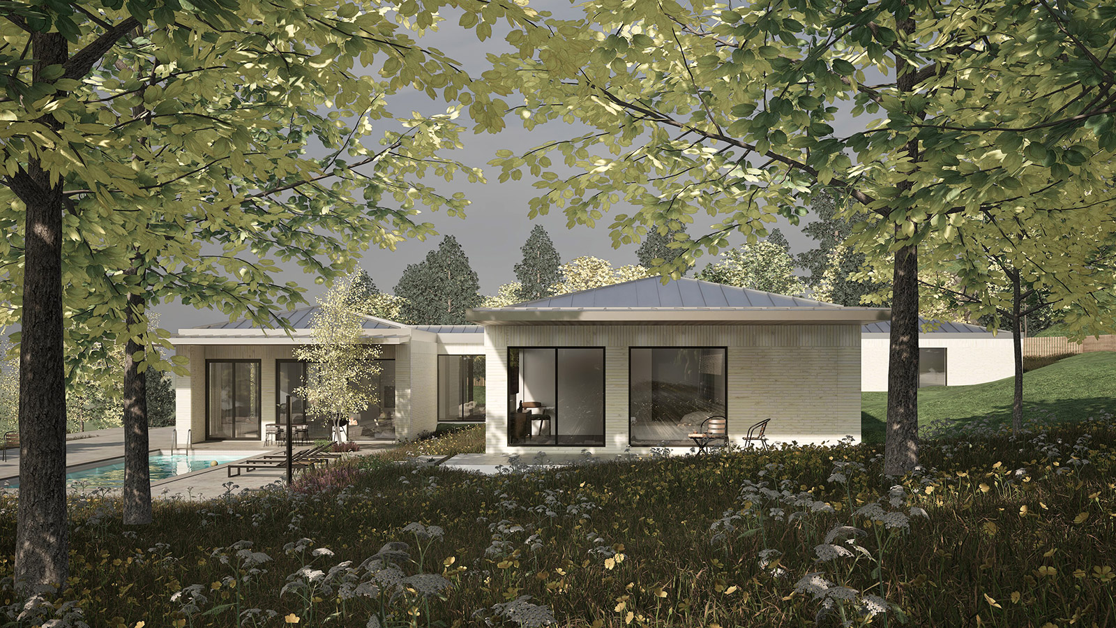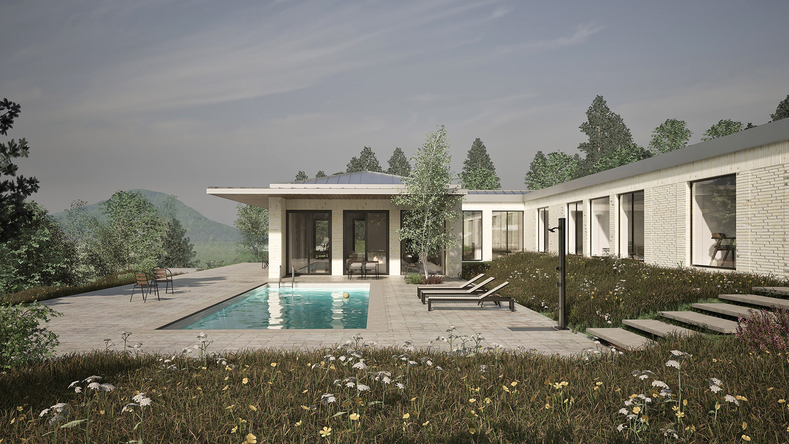 The careful segregation of day, night and technical spaces was an important requirement, alongside allowing for large openings towards the landscape and different levels of intimacy for each wing of the house.