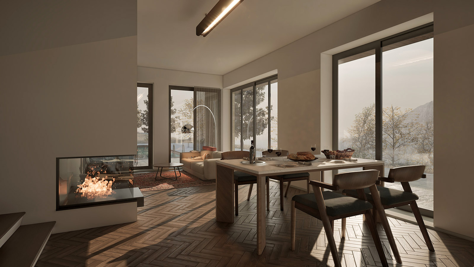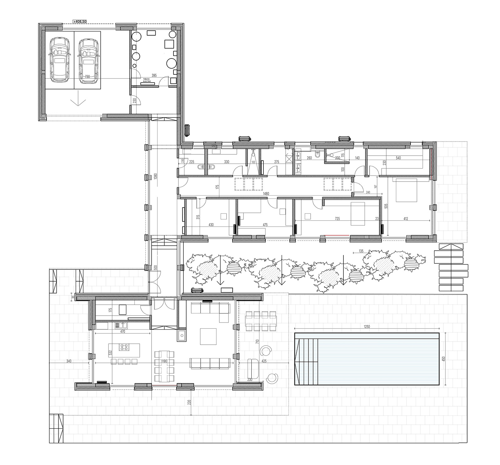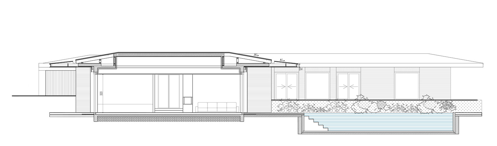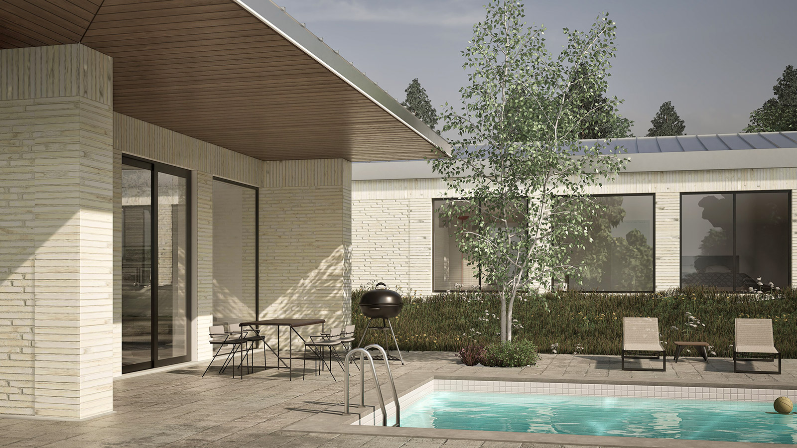 The careful segregation of day, night and technical spaces was an important requirement, alongside allowing for large openings towards the landscape and different levels of intimacy for each wing of the house.